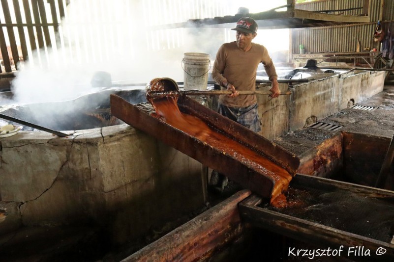 Kiedy syrop stanie się wystarczająco gęsty, przelewa się go przez filtry do okrągłych foremek.